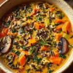 A hearty and nourishing soup featuring wild rice, tender vegetables, and creamy goodness, perfect for chilly autumn evenings.
