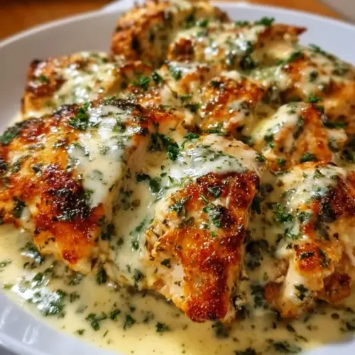 A delightful dish that combines rich flavors and comforting textures, featuring juicy chicken baked in a creamy Parmesan sauce.