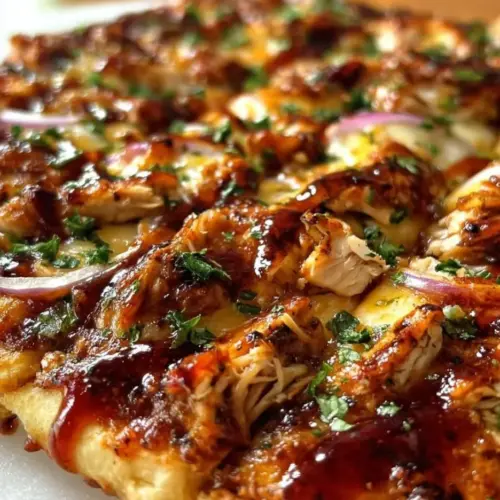 BBQ chicken flatbread brings together the smoky sweetness of barbecue sauce and the juicy tenderness of chicken, all topped on a crispy, delicious base. This dish is not just about flavor; it’s a canvas for creativity and can easily satisfy various taste buds. Serve it at your next gathering, and you’ll surely become the star of the evening with this crowd-pleaser.