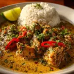 - Serve the Brazilian Coconut Chicken hot over steamed rice.