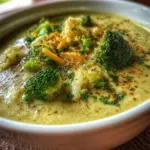 Broccoli Cauliflower Soup is a creamy, comforting dish made from fresh broccoli and cauliflower blended with vegetable broth, garlic, and onions, often enhanced with cream and seasonings.