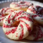 Candy Cane Cookies are festive holiday treats made from a buttery dough flavored with vanilla and peppermint, shaped into colorful candy cane designs, and often decorated with festive sprinkles or icing.