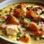 Chicken Cordon Bleu Soup is a delightful twist on the classic dish, transforming the familiar flavors into a rich, creamy bowl of comfort. Imagine biting into tender chunks of chicken and savory ham, all enveloped in a luscious broth finished with melted Swiss cheese. This recipe not only provides a warm, satisfying meal but also invites you to enjoy the comforting essence of Chicken Cordon Bleu without the fuss of traditional preparation.