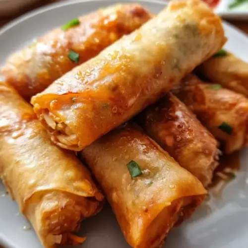 To elevate your serving experience, try adding crunchy toppings such as chopped peanuts or sesame seeds on the rolls. This adds a delightful texture and look that will impress everyone at your table. Don’t forget about a refreshing drink, as a chilled tea or a fruity lemonade will balance the savory flavors of the spring rolls.