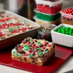 Christmas Magic Cookie Bars are delectable layered bars made with graham cracker crumbs, sweetened condensed milk, chocolate chips, nuts, M&M’s, and coconut. They are known for their delightful taste and festive appearance, perfect for holiday celebrations.