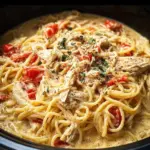 A comforting and creamy chicken spaghetti dish made effortlessly in a crockpot, perfect for busy weeknights.