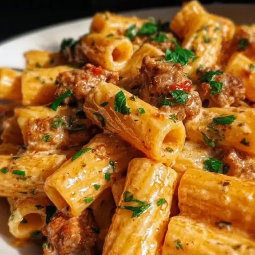 This Creamy Italian Sausage Rigatoni is truly a crowd-pleaser. The creamy sauce provides a luxurious texture that clings to each piece of pasta, ensuring every bite is packed with flavor. Using Italian sausage adds a savory taste that complements the richness of the sauce beautifully. The combination of spices and herbs elevates this dish, making it irresistible. It’s a meal that combines comfort and elegance, perfect for both weeknight dinners and special occasions. Plus, it’s quick to prepare, making it a practical choice for busy cooks without sacrificing quality. Every forkful delivers a satisfying symphony of flavors that will keep everyone coming back for seconds.