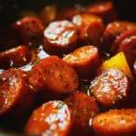 - Pour the glaze mixture over the kielbasa, ensuring all pieces are coated.