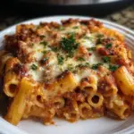 Once everything is layered in your crockpot, cover it with the lid and set your slow cooker to cook on low for 4 to 6 hours, or if you’re in a hurry, on high for 2 to 3 hours. The slow cooking process allows all the flavors to meld together beautifully. When the time is up, let the dish sit for a few minutes before diving in. This resting period ensures the cheese settles and makes serving much easier. If you’d like, garnish your Crockpot Baked Ziti with fresh basil for an aromatic finish that enhances not only the look but also the taste of the dish.