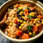 Crockpot Fiesta Chicken is a slow-cooked dish made with chicken breasts, black beans, corn, salsa, and cheese, creating a flavorful meal that is easy to prepare.