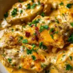 Crockpot Ranch Chicken is a flavorful slow-cooked dish made with chicken breasts, ranch seasoning, and cream cheese, resulting in a creamy and savory meal.