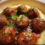 - Serve and Enjoy: Once cooked, you’re ready to serve. Spoon the meatballs along with the rich gravy over a bed of mashed potatoes or fluffy rice for a complete meal that’s sure to please your appetite.