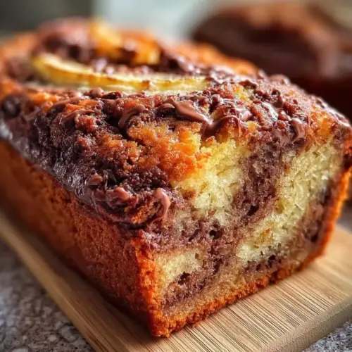 A luxurious twist on classic banana bread featuring the richness of Nutella and the sweetness of ripe bananas, creating a moist and flavorful treat perfect for breakfast or dessert.