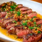 8. Slice and Serve: After resting, thinly slice the steak against the grain. This technique helps ensure tenderness with every bite. Serve the slices hot, drizzled with the remaining garlic butter sauce left in the pan, allowing every morsel to soak in that rich flavor.