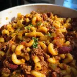 You’ll love Gramma’s Old-Fashioned Chili Mac for its simplicity and the nostalgic feeling it brings. It’s one of those recipes that seem to have been passed down through generations, carrying a unique charm that modern meals often lack. The blend of macaroni, meat, and vegetables provides a hearty, filling dish that’s perfect for busy weeknights. It’s not just a meal; it’s a comforting hug in a bowl. Moreover, this recipe is very adaptable, allowing you to include extra vegetables or spices according to your family’s preferences. The ease of preparation and the straightforward cooking process make it a favorite for both novice and experienced home cooks alike, ensuring that everyone can enjoy a great meal with minimal fuss.