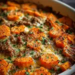 Ground Turkey Sweet Potato Bake combines sweet potatoes and lean ground turkey baked together with creamy cheese and spices for a hearty meal.