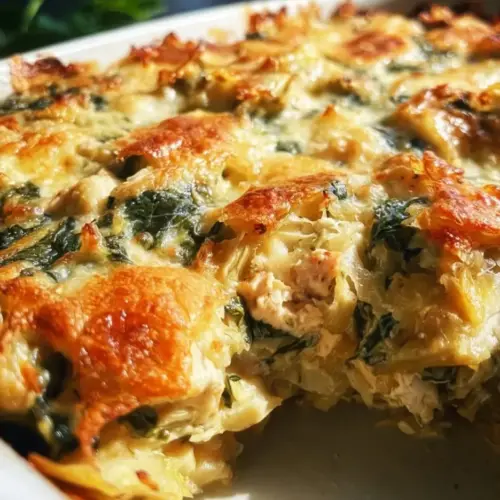 High-Protein Spinach and Artichoke Chicken Casserole is a delightful dish that combines the creamy goodness of spinach and artichokes with the satisfying heartiness of chicken. This casserole not only bursts with flavor but also shines as a healthy option packed with protein. If you seek a comforting meal that’s easy to prepare yet impressive enough for a gathering, this recipe is perfect for you.