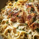 A comforting Italian-American dish featuring creamy Alfredo sauce, tender chicken, and fettuccine pasta, perfect for cozy nights or entertaining guests.