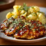 Finally, return the glazed chicken to the skillet alongside the creamy potatoes. Spoon some of that luscious sauce over the chicken, and let everything mingle on low heat for about 2–3 minutes to ensure a beautiful harmony of flavors. If you like, garnish the dish with fresh chopped parsley for a touch of color and freshness. Serve hot and prepare yourself for a satisfying meal.