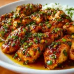 Continue to cook the chicken for about 6 to 7 minutes on each side. It’s important to turn the chicken to ensure that it cooks evenly and absorbs all those flavors. You’ll know it’s ready when the chicken is cooked through and the glaze has become thick and sticky, coating the chicken beautifully.