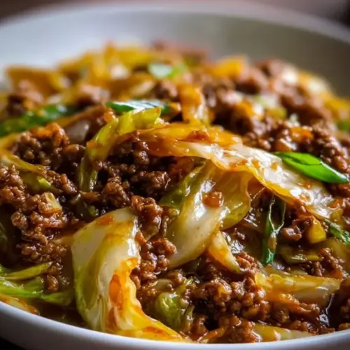 If you enjoy a bit of spice, serving this with a side of chili sauce or sriracha can enhance the meal further. For those who like texture, consider adding some chopped nuts like almonds or cashews on top just before serving; they provide a nice contrast to the tender cabbage and beef. This dish also makes for great leftovers—simply store it in the refrigerator, and it will taste even better the next day as the flavors continue to meld. Whether you eat it directly from the pan or plate it up for impressing guests, this dish shines in its versatility.
