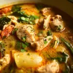 A comforting soup featuring tender chicken, fresh vegetables, and a creamy broth, perfect for cozy nights or special occasions.