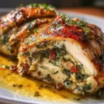 Mediterranean Stuffed Chicken Breast is a dish that features chicken breasts filled with a mixture of sun-dried tomatoes, spinach, feta cheese, and herbs. It’s baked until tender and juicy, offering a taste of Mediterranean cuisine.