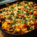 - Transfer this hearty mixture into a greased 9×13 inch casserole dish. Ensure it’s spread evenly to promote even cooking.