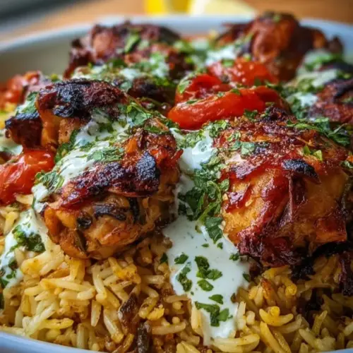 Middle Eastern Chicken and Rice with Yogurt Tahini Sauce brings together vibrant flavors and wholesome ingredients, offering a comforting meal that satisfies both the palate and the soul. This dish features tender chicken infused with aromatic spices, served over a fluffy bed of rice and topped with a creamy yogurt tahini sauce. The combination of textures and tastes makes this a standout dish for any occasion, whether it’s a weeknight dinner or a festive gathering.