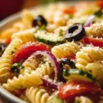 Olive Garden-Inspired Pasta Salad is a delightful mix of cooked pasta and fresh vegetables, combined with a tangy dressing and feta cheese, bringing the flavors of the popular Italian restaurant right to your home.