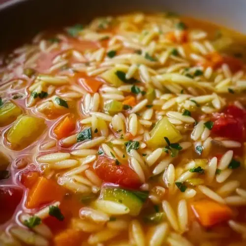Orzo vegetable soup is a comforting dish made with orzo pasta and a mix of fresh vegetables simmered in a flavorful broth.