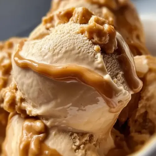 Peanut Butter Greek Frozen Yogurt is a creamy frozen dessert made with Greek yogurt combined with peanut butter, sweetener, and flavorings, creating a deliciously healthy treat.