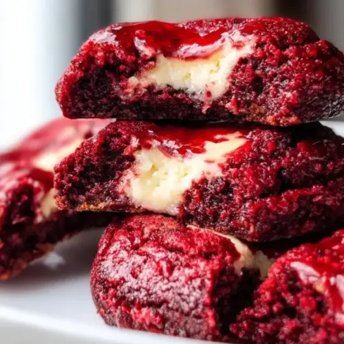 Delightful cookies that combine the rich flavors of red velvet cake with a creamy cheesecake center, perfect for celebrations or any sweet treat craving.