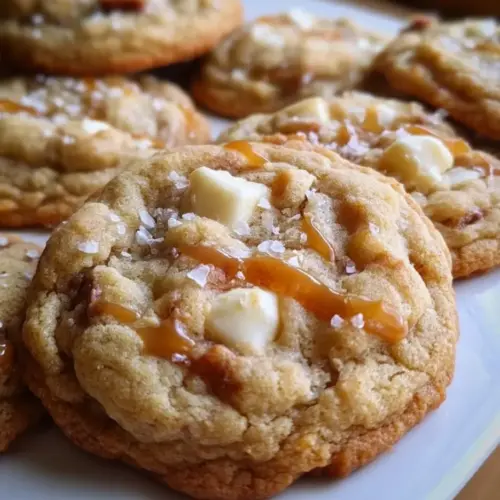 Delightful cookies combining sweet white chocolate and rich salted caramel flavors, perfect for any occasion.
