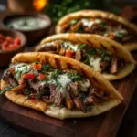 Now that your Savory Beef & Mushroom Stuffed Pita Pockets are prepared, it’s time to think about how to serve them. A great serving suggestion is to arrange the filled pockets on a platter, accompanied by an array of sauces for dipping. This makes it a fun meal for gatherings or family dinners, allowing everyone to customize their experience.