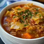 Slow Cooker Cabbage Roll Soup offers all the flavors of traditional cabbage rolls but in a simpler, easier-to-prepare format. You eliminate the labor-intensive rolling of cabbage leaves and instead combine everything in a pot or slow cooker to simmer together.