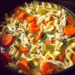 Roughly 30 minutes before you’re ready to serve, add in the egg noodles. Give it a gentle stir, then cover it again. The noodles will cook to tender perfection while absorbing the rich flavors of the broth. Keep an eye on your timer, and as the time approaches, you’ll feel a sense of excitement knowing you’re about to enjoy a warm, comforting bowl of soup.