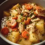 A comforting, hearty meal made with tender chicken, fresh vegetables, and savory broth, perfect for families or gatherings.