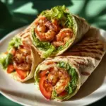 A Smoky Grilled Shrimp Caesar Wrap is a delightful combination of grilled shrimp seasoned with smoked paprika, fresh romaine lettuce, creamy Caesar dressing, and grated Parmesan cheese wrapped in a tortilla. It’s a quick and flavorful meal perfect for various occasions.