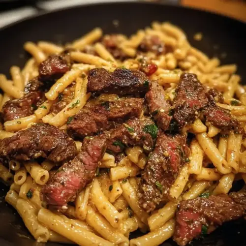 Spicy garlic butter parmesan steak pasta combines rich flavors and delightful textures into one satisfying dish. The tenderness of steak melds beautifully with al dente pasta while a spicy garlic butter sauce brings everything to life. This dish is perfect for a special occasion or a cozy weeknight dinner, where you can impress your guests or simply enjoy a comforting meal with your loved ones.
