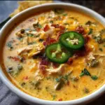 Spicy Jalapeño Popper Chicken Soup is a creamy and flavorful soup that combines tender shredded chicken with jalapeños and spices, creating a perfect blend of heat and comfort.