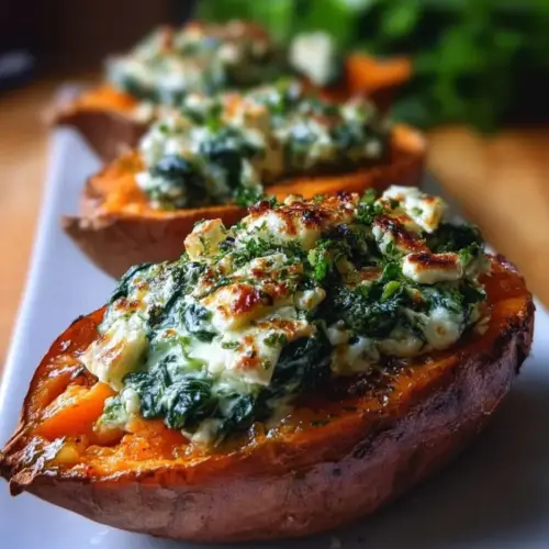 Stuffed roasted sweet potatoes with spinach and ricotta blend wholesome ingredients into a delightful dish that tickles your taste buds while being good for you. Their tender sweetness, paired with the creamy filling, makes these potatoes not just a dish but a comfort food experience. Whether you’re serving them for a weekday dinner or a special gathering, these stuffed potatoes offer a satisfying and nutritious option that everyone can enjoy.