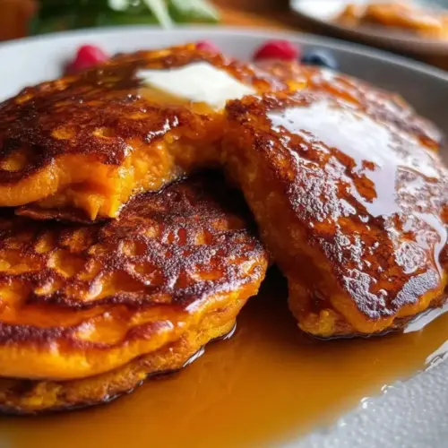 Delicious sweet potato pancakes that offer a nutritious twist on a breakfast favorite, combining sweet potatoes with traditional pancake ingredients for a delightful meal.