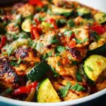 Tex Mex Chicken and Zucchini is a flavorful skillet dish that combines tender chicken breasts, fresh zucchini, colorful bell peppers, corn, black beans, and spices, all topped with melted cheese. It’s a wholesome and nutritious meal perfect for any weeknight dinner.