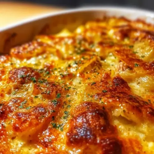 A comforting dish that combines tender potatoes and hearty tuna with a creamy sauce topped with a crispy layer.