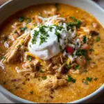 White chicken chili with cream cheese is a heartwarming dish that combines the robust flavors of chicken and spices with the creamy, comforting texture of cream cheese. This recipe has become a go-to meal for many as it not only fills your kitchen with an inviting aroma but also warms the soul. Whether you’re preparing it for a busy weeknight dinner or a cozy gathering with friends, this recipe offers a delightful balance of spice and creaminess that pleases everyone at the table.